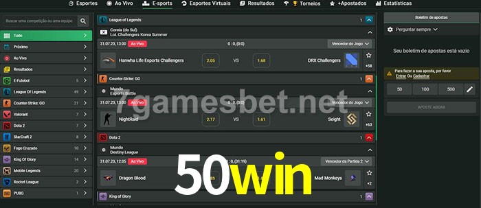 A aposta 50win oferece aos jogadores a experiência mais conveniente de apostas em eSports!